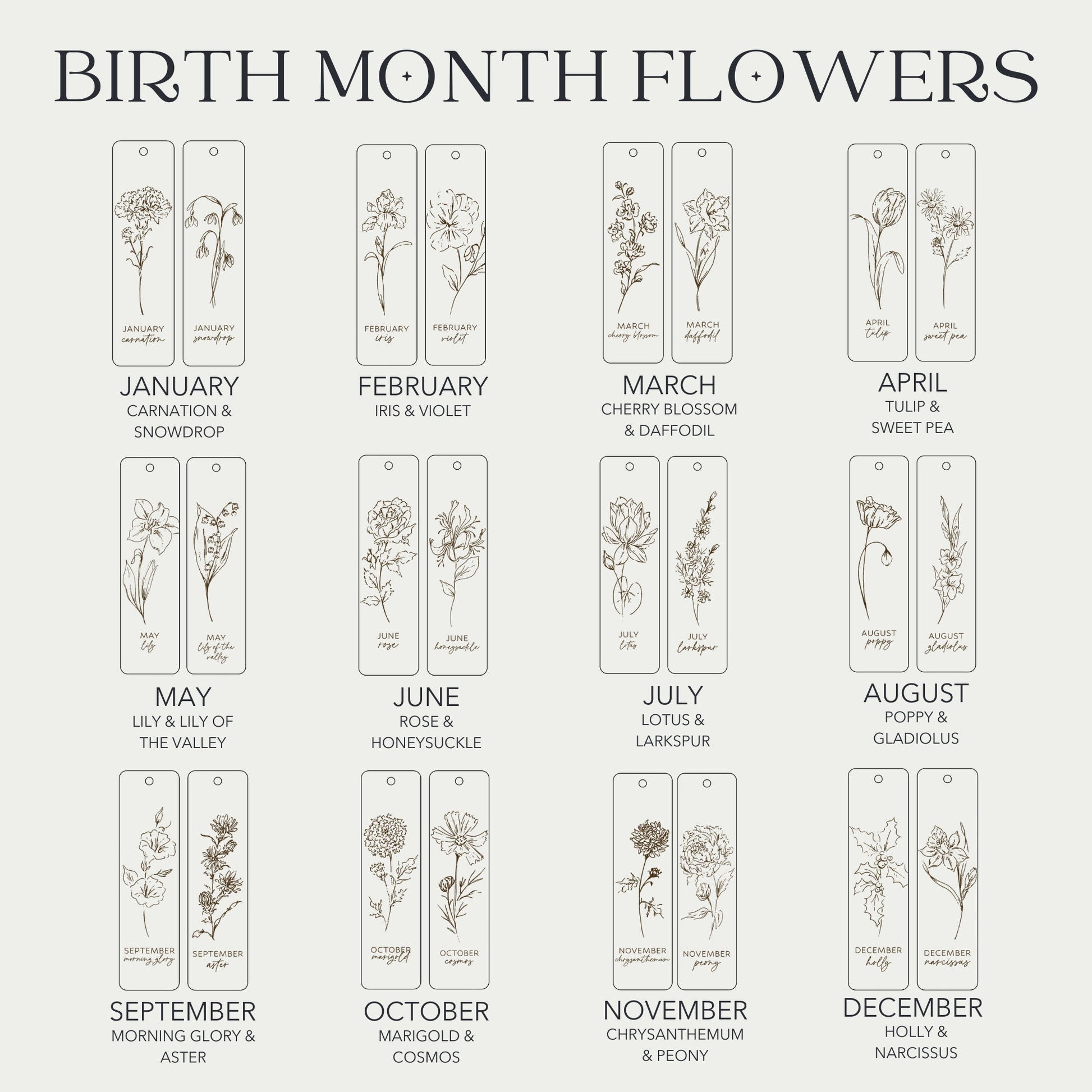 Personalized Birth Month Flower Bookmark