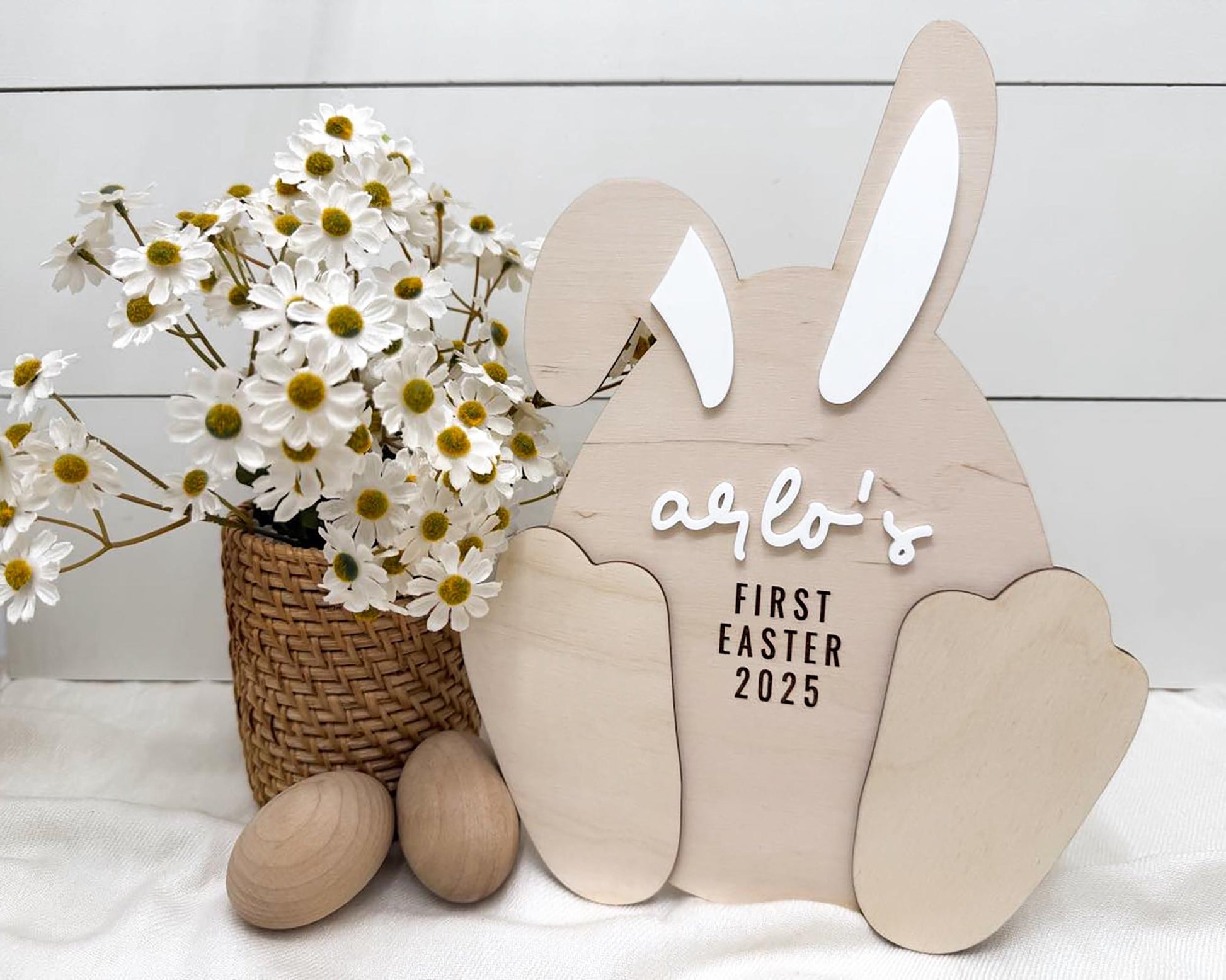1 Engraved customizable wooden Easter bunny footprint sign