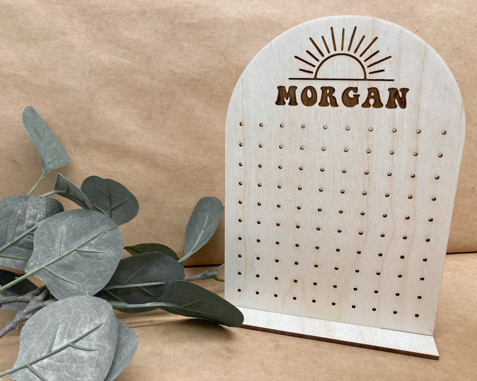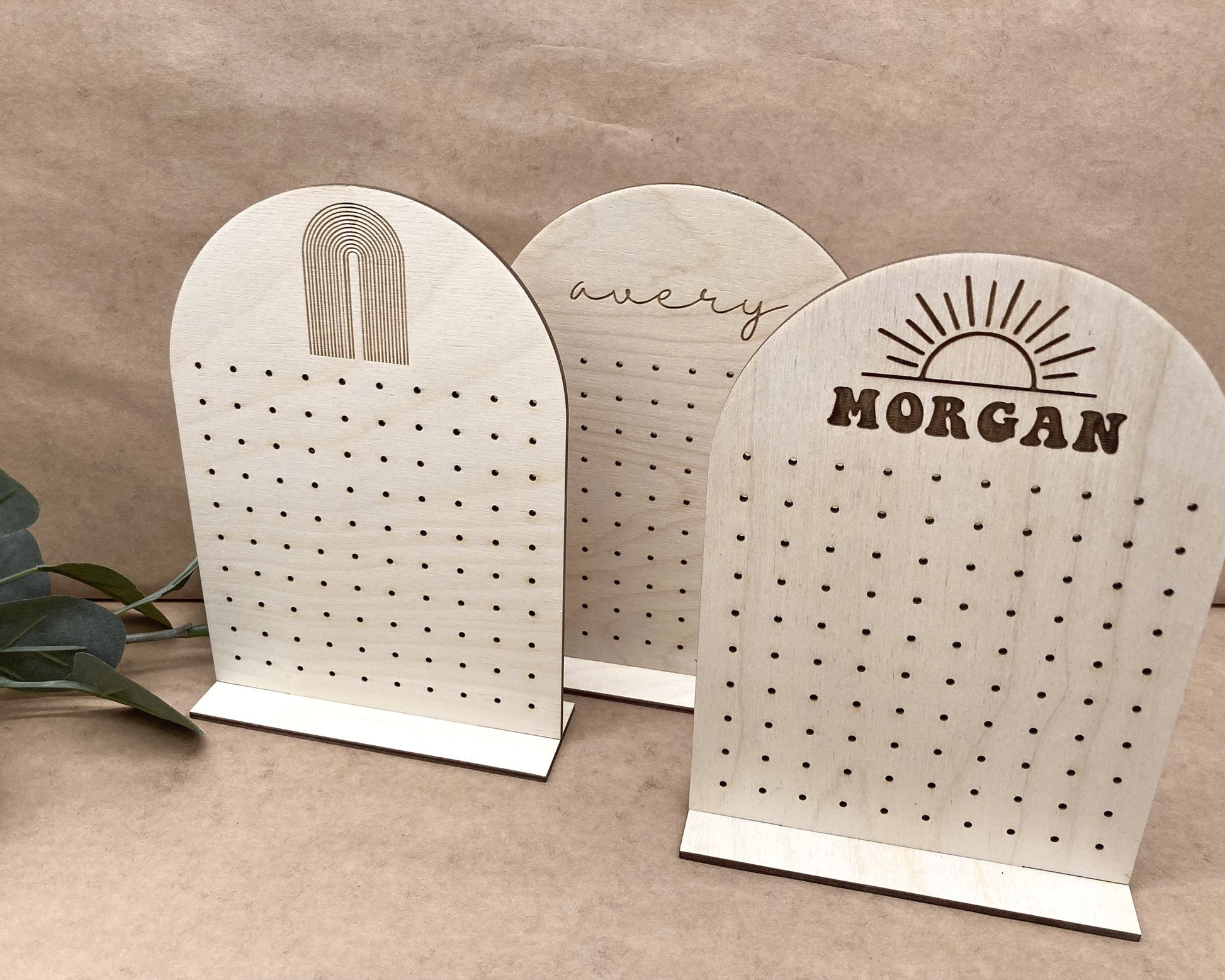 Organize your stud or dangle earrings on this arched jewelry stand. Easily stand it on a dresser or shelf for easy access.