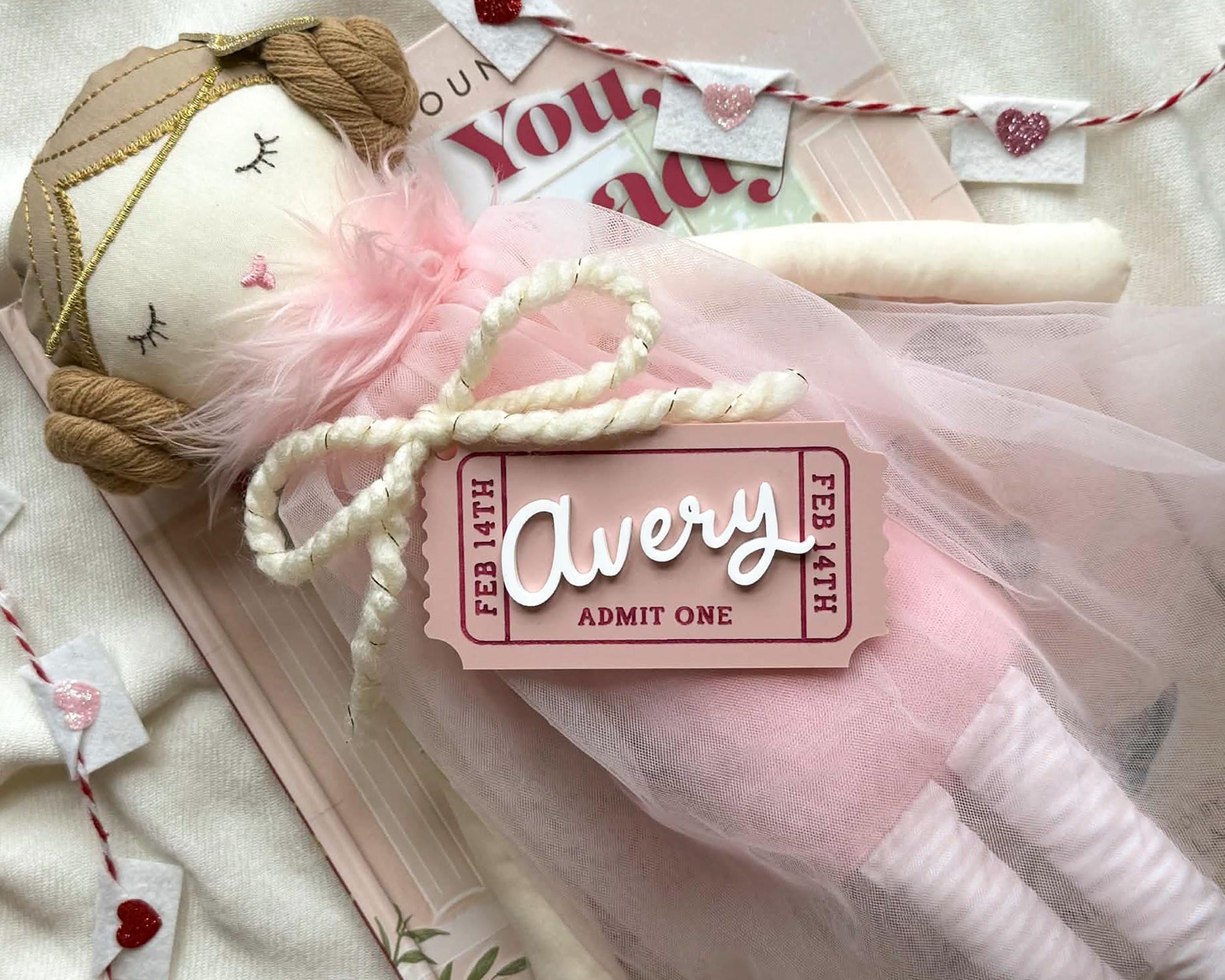 Adorn your girls Valentine love basket with this unique personalized basket tag